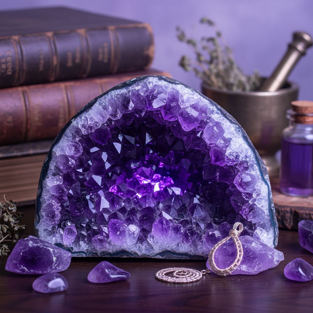 L’améthyste est réputée pour sa capacité à absorber les énergies négatives et à neutraliser les rayonnements électromagnétiques. Une géode placée près de votre ordinateur peut créer une bulle protectrice, tandis qu’un cluster dans votre chambre favorisera un sommeil paisible.