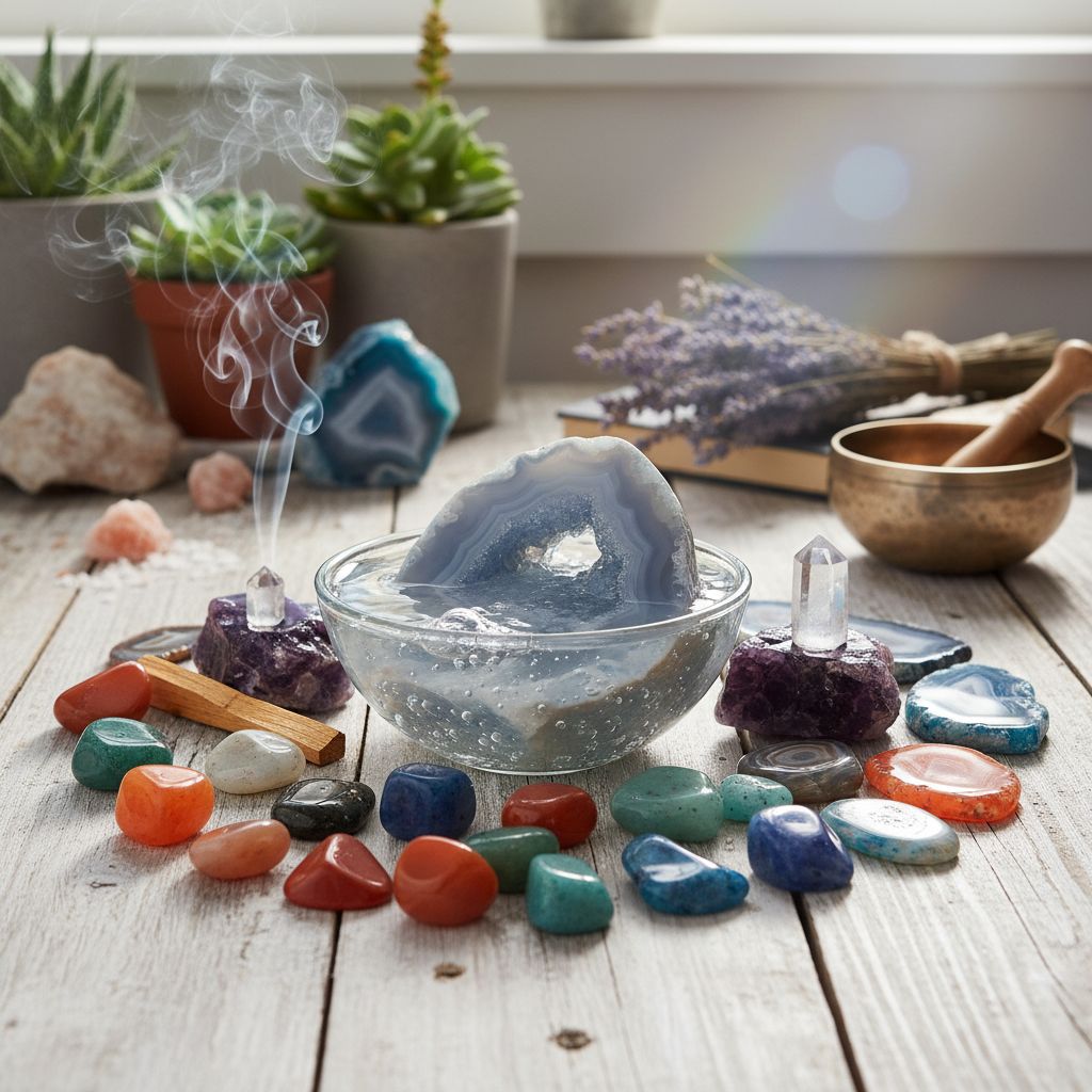 La purification et la recharge de l’agate peuvent devenir un véritable rituel personnel. Commencez par choisir un moment calme, allumez une bougie ou un bâton de sauge, et prenez quelques instants pour vous centrer avant de manipuler votre pierre.